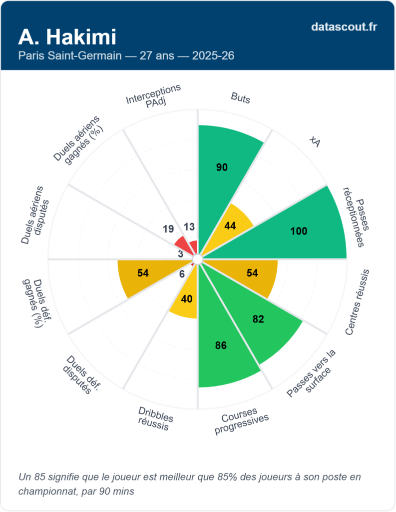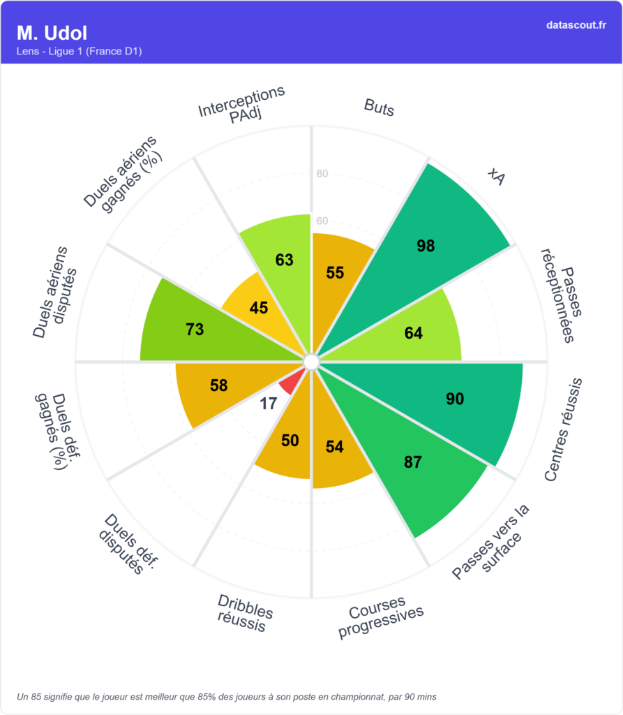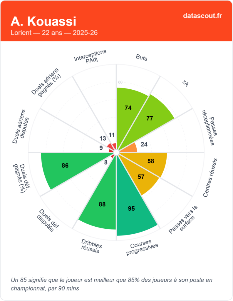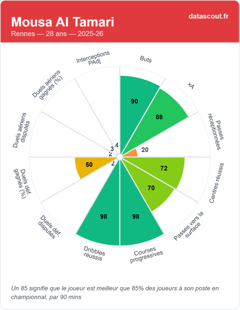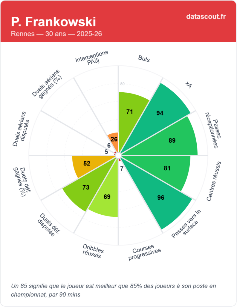 • Elite en dribbles (95) et courses progressives (91)
