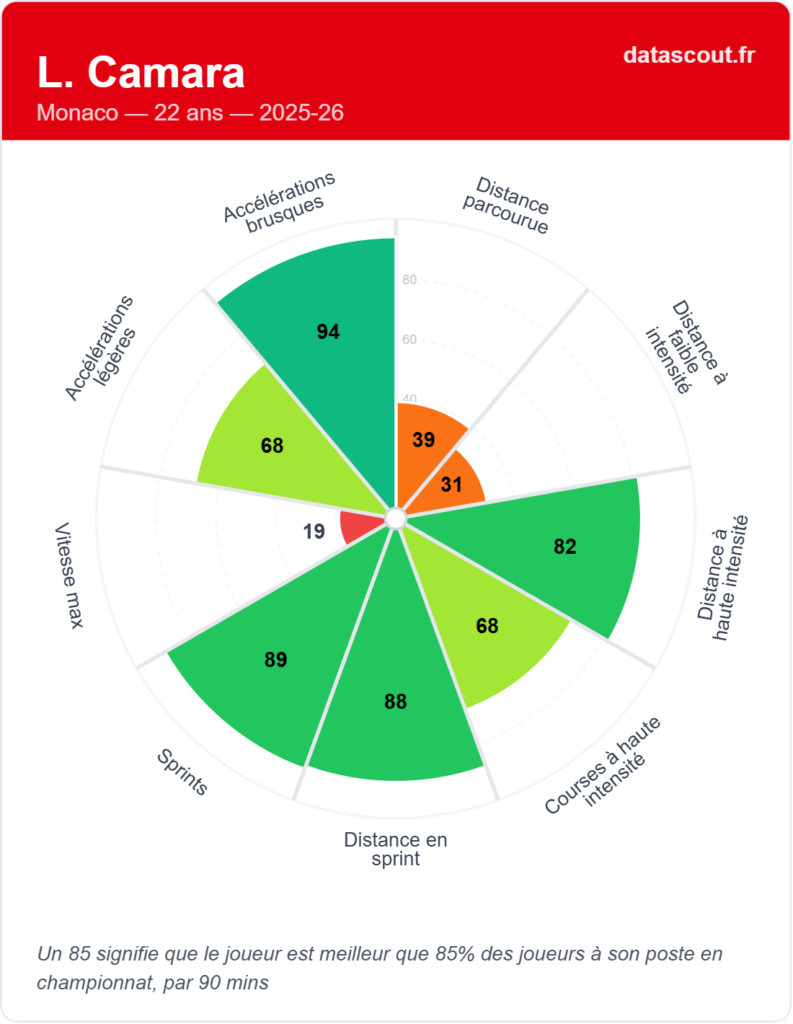Les chiffres viennent renforcer cette impression : Camara est un milieu complet, déjà très avancé dans son développement.