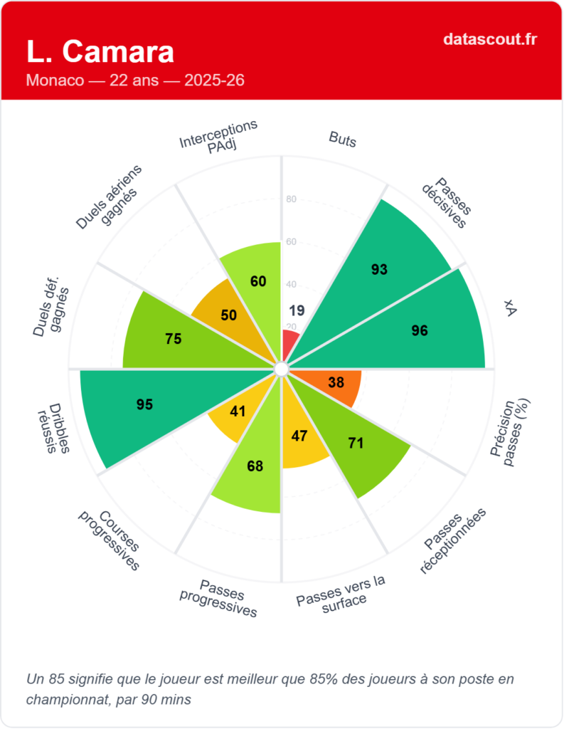Les chiffres viennent renforcer cette impression : Camara est un milieu complet, déjà très avancé dans son développement.