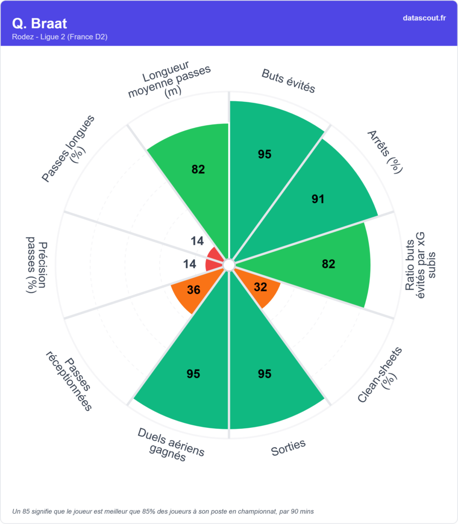 Longtemps tourné vers le maintien, Rodez change de dimension. Avec un gardien de ce niveau, capable de faire basculer des matchs, le RAF possède une arme précieuse dans le sprint final. Braat incarne parfaitement cette équipe : résiliente, sous-estimée, mais efficace.